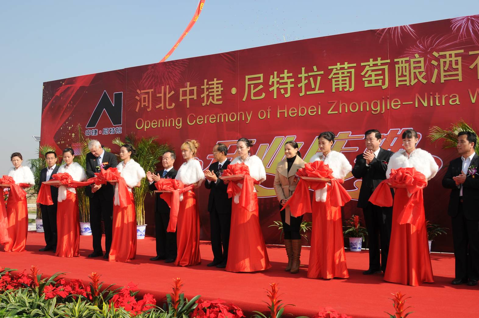 剪彩儀式結束后,應邀嘉賓參觀了尼特拉酒莊,品嘗尼特拉品牌葡萄酒,并在參觀中合影留念。慶典結束后,各位嘉賓參加了尼特拉公司舉辦的答謝午宴,伴隨著午宴上悠揚的歌聲,中捷尼特拉葡萄釀酒有限公司開業慶典活動圓滿結束。