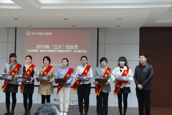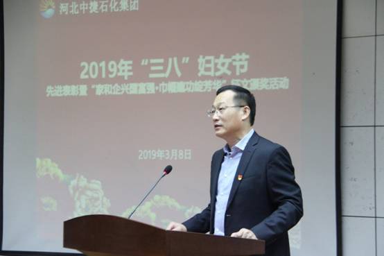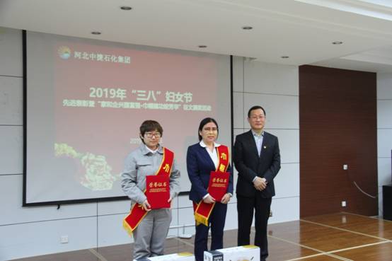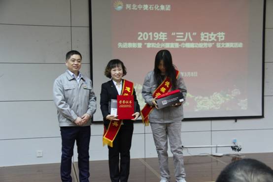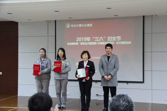 3月8日上午,河北中捷石化集團在科研樓六樓會議室組織舉辦了2019年“三八”婦女節先進表彰暨“家和企興國富強?巾幗建功綻芳華”征文頒獎活動。集團公司黨政領導,各單位黨(總)支部領導、先進女職工、征文獲獎者及女工代表等80余人參加活動。中捷產業園區宣傳部劉金林部長出席了本次活動。