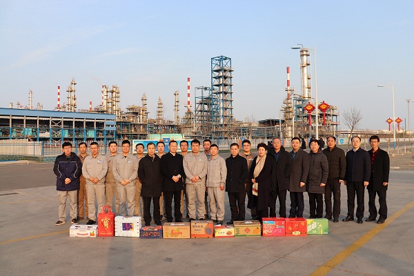 2020年1月24日,正值大年三十,河北中捷石化集團有限公司領導班子在集團黨委書記于國臣、總經(jīng)理喬樹華的帶領下,先后赴河北華鑫洺源石油儲運有限公司、河北新欣園能源股份有限公司、河北新啟元能源技術開發(fā)股份有限公司、河北華騰化工設備安裝工程有限公司、滄州臨港華辰石油產(chǎn)品有限公司第一加油站、河北捷馨建材責任有限公司地熱站、黃驊華悅凱旋大酒店,親切慰問了節(jié)日期間仍堅守崗位的伙伴們,為大家送去慰問品,表達了新春的祝福和節(jié)日的關懷。同時對伙伴們的辛勤付出與奉獻及廣大員工家屬的理解與支持表示誠摯的敬意和由衷的感謝,并叮囑各單位主要領導合理部署安排節(jié)日期間的工作,讓伙伴們度過祥和、歡樂的節(jié)日。