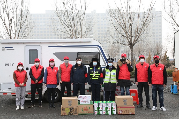 2月21日,河北中捷石化集團志愿服務隊為園區五個一線疫情防控站點捐贈方便面、純牛奶、火腿腸、面包、暖身寶、84消毒水等物資共計4000余元,用行動助力了一線疫情防控。這一箱箱物品彰顯著石化人的愛心,肩負著石化人的囑托,為一線疫情防控人員帶來了極大鼓舞。
