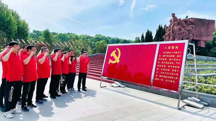 離開紀念館時,集團公司黨員干部一行共同瞻仰了雕塑《忠魂曲》,并在集團公司總經理、黨委副書記喬樹華同志的帶領下重溫了入黨誓詞。
