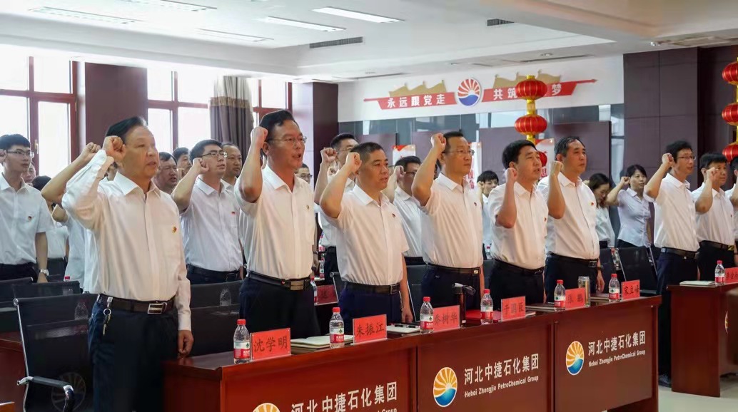 河北中捷石化集團黨委慶祝建黨100周年大會到此圓滿結束,正如于書記所講“面向未來,集團黨委將繼續以習近平新時代中國特色社會主義思想和黨的十九大精神為引領,深學細悟實用黨的十九屆五中全會精神,充分發揮政治核心和領導核心作用,緊緊圍繞企業發展做功課,團結一致、大膽創新、銳意進取,努力實現企業發展與黨建工作的高度融合,形成紅色文化發展新高度;繼續堅持貫徹‘認真、真實、實在’的企業精神、‘學習是石化園永不竣工的政治工程’的學習理念、‘強化拼搶闖、消除懶散閑’的工作作風和‘中捷石化唯一不變的就是變’的進取意識,擔負新使命,展現新作為,全心全意向‘做到’邁進;繼續堅持以黨史學習教育為契機,在按照規范要求開展各項規定動作的同時,積極落實上級黨委對集團黨建工作的部署安排,為苦干實干三年,推動滄州渤海新區實現高質量跨越式發展打牢思想基礎,作出應有貢獻;再接再厲、砥礪奮進,在穩扎穩打、創新有為的基層黨建事業進程中,為中國共產黨100周年華誕獻禮。”