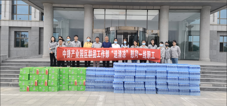 集團公司訊 芒種剛過,“三夏”一片火熱忙碌時節,又值項目建設時期,中捷產業園區群團工作部攜手集團工會,向生產一線的伙伴們送上一份真切的關懷與慰問。6月8日上午,群團工作部曹偉華部長一行來到集團公司,集團黨委副書記、工會主席朱振江,新啟元工會主席張金甫,新欣園黨支部書記王升,以及各生產部門代表熱情接待。