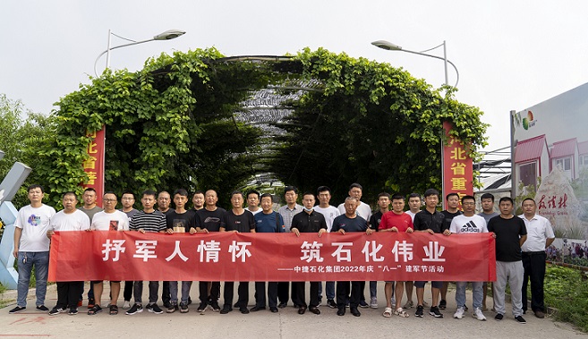 集團(tuán)公司訊 為發(fā)揚(yáng)集團(tuán)公司擁軍優(yōu)屬的光榮傳統(tǒng),謳歌人民解放軍對偉大祖國和人民做出的豐功偉績,頌揚(yáng)人民解放軍為保衛(wèi)祖國用血肉筑起的鋼鐵長城,引領(lǐng)廣大職工進(jìn)一步深刻領(lǐng)會和繼承人民解放軍無私奉獻(xiàn)和忠誠擔(dān)當(dāng)?shù)膬?yōu)良作風(fēng)和革命精神,團(tuán)結(jié)廣大職工立足新時代、新時期,開拓創(chuàng)新,扎實工作,牢記使命,堅定信念,以奮斗者的姿態(tài),以飽滿的熱情譜寫百年石化夢的新篇章,8月1日,集團(tuán)黨委組織開展了“抒軍人情懷 筑石化偉業(yè)——熱烈慶祝中國人民解放軍建軍95周年”集團(tuán)2022年慶“八一”建軍節(jié)活動。集團(tuán)董事長王振華,黨委書記于國臣,黨委委員、副總經(jīng)理張鵬,財務(wù)總監(jiān)宋立峰,以及各黨(總)支部書記、各所屬單位退伍軍人共計38人參加了此次活動。