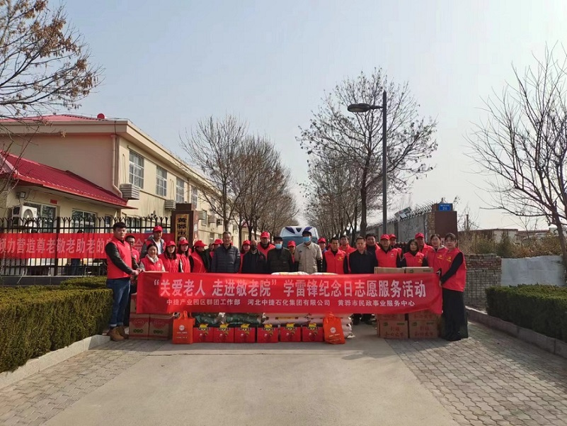 集團(tuán)公司訊(圖文:李樹祥)今年的3月5日是第60個(gè)“學(xué)雷鋒紀(jì)念日”,為深入落實(shí)習(xí)近平總書記對(duì)深入開展學(xué)雷鋒活動(dòng)的重要指示精神,充分發(fā)揮職工志愿服務(wù)隊(duì)的作用,5日上午,河北中捷石化集團(tuán)有限公司黨委走進(jìn)黃驊市民政事業(yè)服務(wù)中心開展“關(guān)愛老人 走進(jìn)敬老院”學(xué)雷鋒紀(jì)念日志愿服務(wù)活動(dòng)。集團(tuán)黨委向老人們送上了米面油水果等生活物資,并向他們表達(dá)了誠(chéng)摯的祝福。