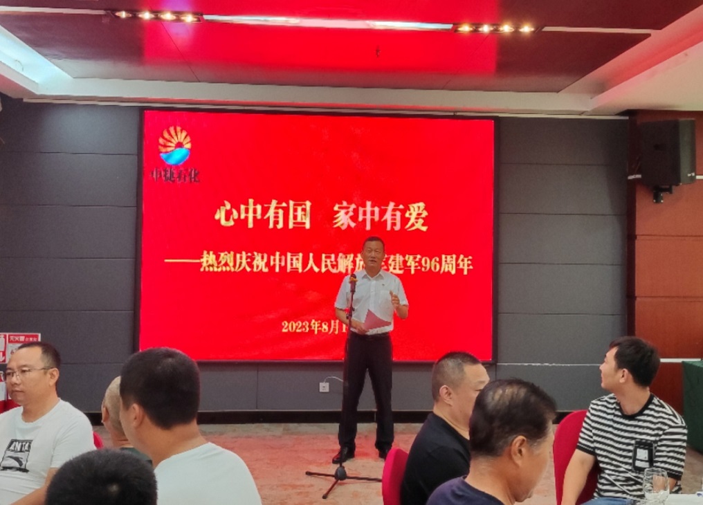集團(tuán)公司訊 為慶祝中國人民解放軍建軍96周年,謳歌人民解放軍對(duì)偉大祖國和人民做出的豐功偉績(jī),頌揚(yáng)人民解放軍為保衛(wèi)祖國用血肉筑起的鋼鐵長(zhǎng)城,繼承人民解放軍無私奉獻(xiàn)和忠誠擔(dān)當(dāng)?shù)膬?yōu)良作風(fēng)和革命精神,團(tuán)結(jié)廣大職工立足新時(shí)代、競(jìng)技新賽道、邁步新征程,開拓創(chuàng)新,扎實(shí)工作,8月1日,集團(tuán)黨委組織開展了“心中有國 家中有愛——熱烈慶祝中國人民解放軍建軍96周年”集團(tuán)2023年慶“八一”建軍節(jié)活動(dòng)。集團(tuán)董事長(zhǎng)王振華,黨委書記于國臣,總經(jīng)理喬樹華,以及各黨(總)支部書記、各所屬單位退伍軍人共計(jì)40人參加了此次活動(dòng)。