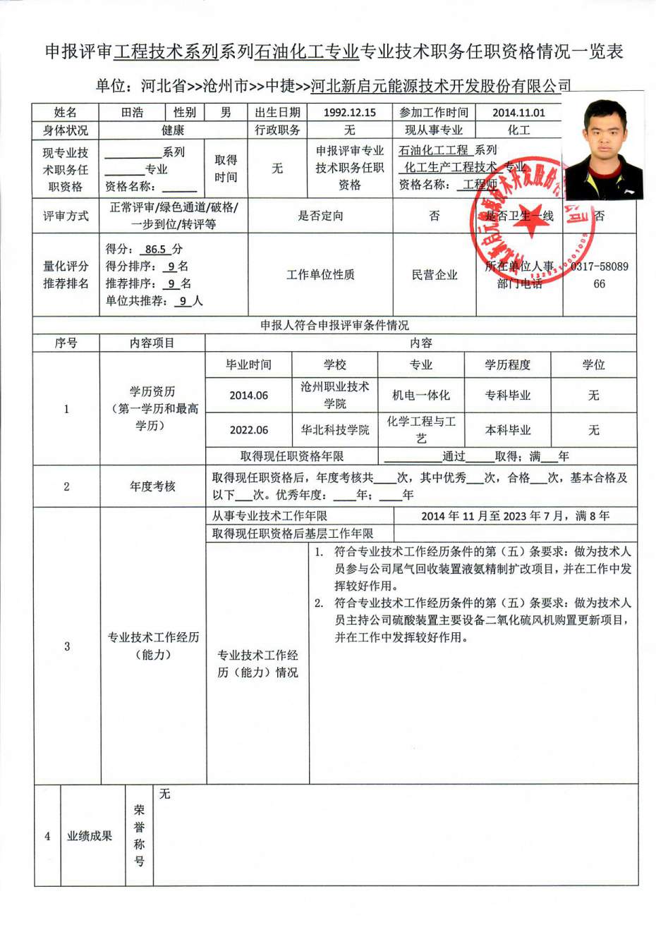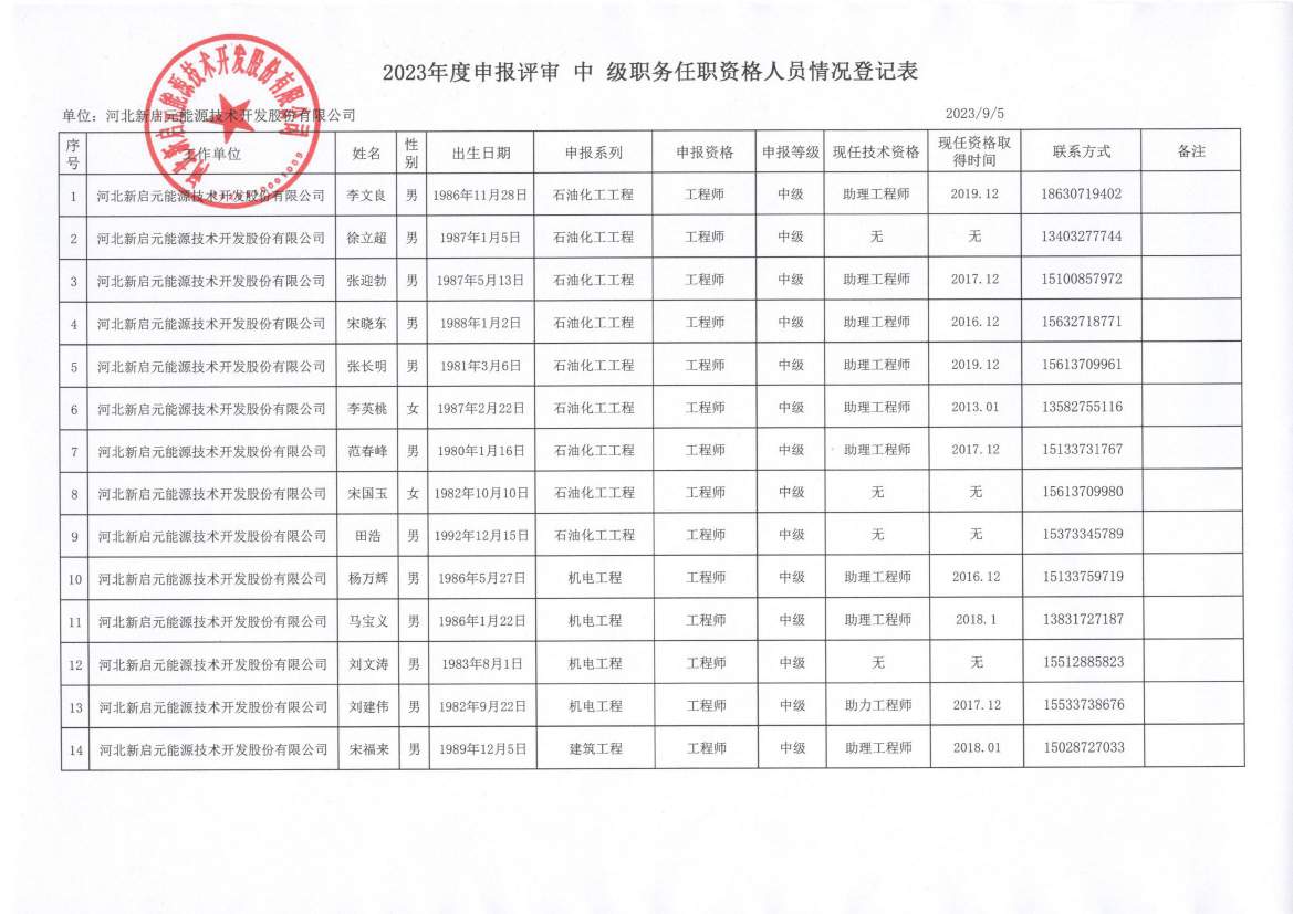 2023年河北新啟元申報(bào)中級(jí)職稱人員信息公示