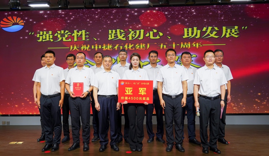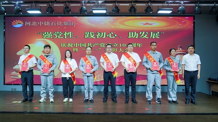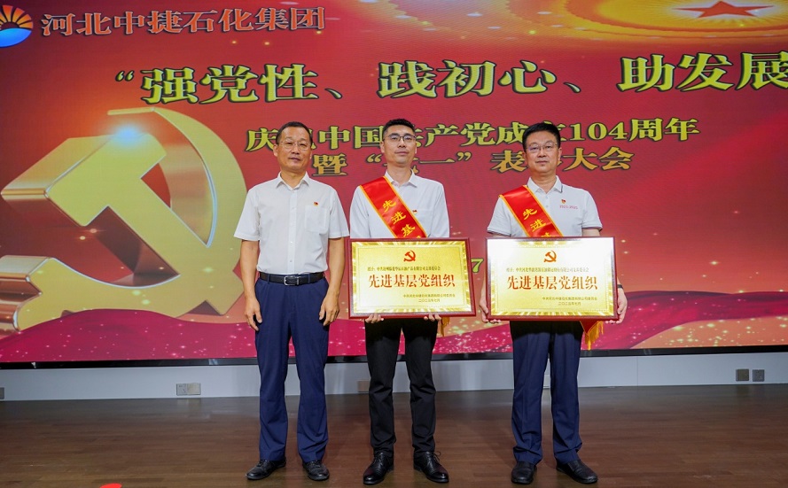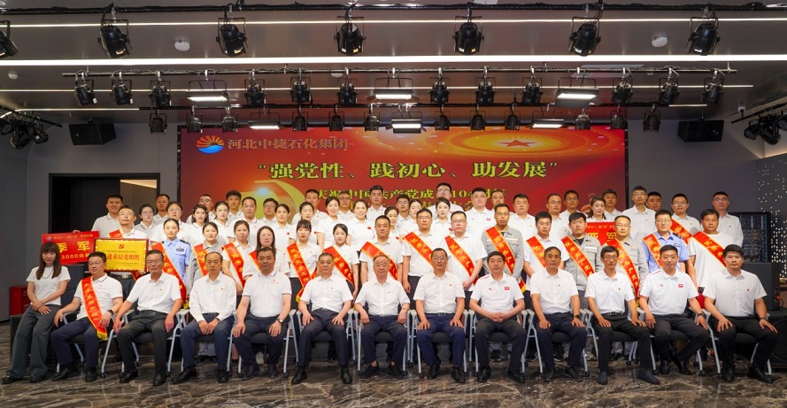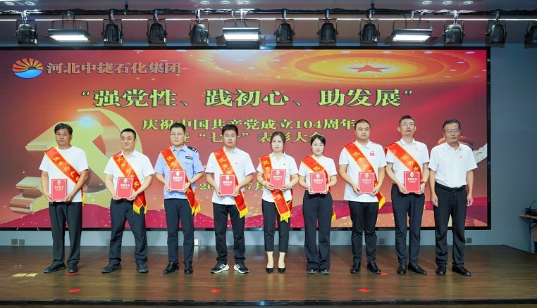 集團公司訊 為慶祝中國共產黨成立104周年,進一步激勵各基層黨組織和黨員充分發揮戰斗堡壘作用和先鋒模范作用,弘揚先進典型,彰顯榜樣力量,不斷增強基層黨組織的創造力、凝聚力、戰斗力,同時結合慶祝建廠50周年系列活動,為激發廣大黨員職工的愛黨愛國熱情,展現中捷石化人“認真、真實、實在”的企業精神,凝聚力量團結一心向前行,7月1日,河北中捷石化集團黨委在偉業大廈二樓多功能廳組織召開了慶祝中國共產黨成立104周年暨“七一”表彰大會和合唱比賽。集團董事長王振華同志,集團黨委書記于國臣同志,集團黨委副書記、總經理喬樹華同志,集團黨委副書記、紀委書記朱振江同志以及各黨支部書記、各所屬單位總經理、2024-2025年度先進基層黨組織代表、優秀黨務工作者、優秀共產黨員、合唱比賽人員共計120余人參加了此次活動。