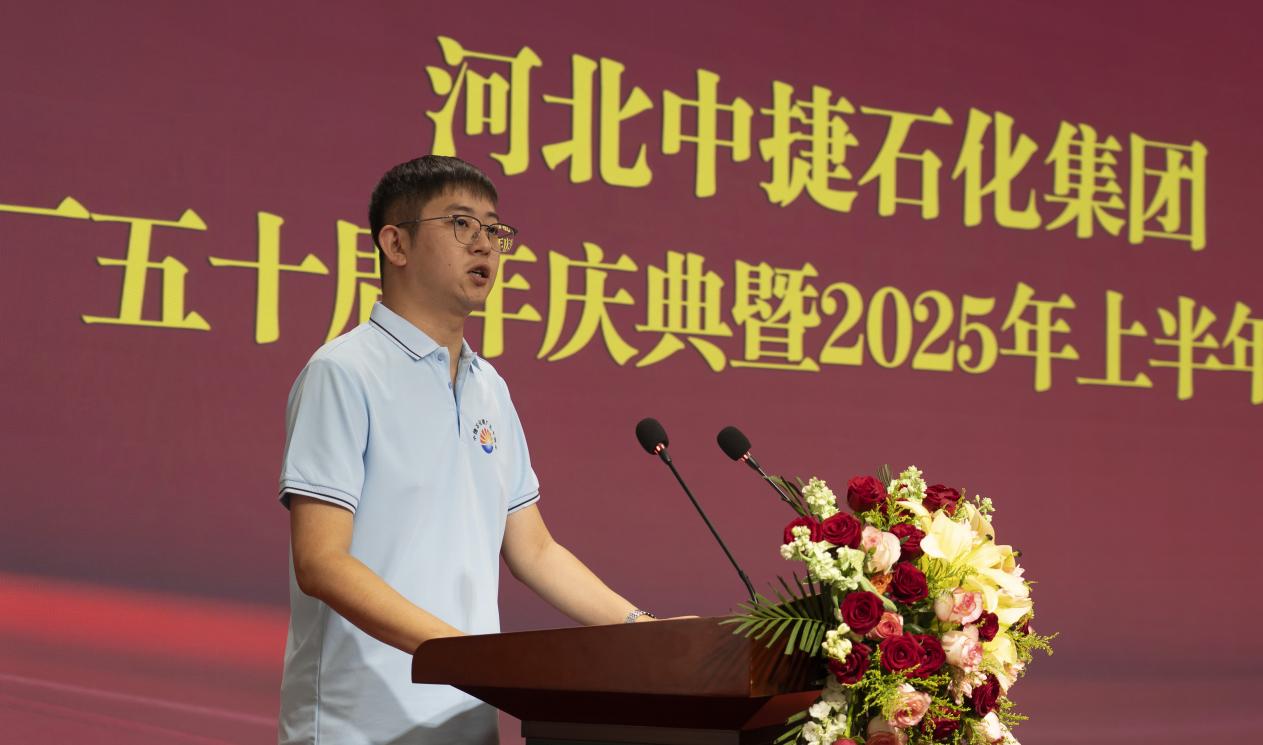 集團公司訊 五秩風華正茂,揚帆再啟新程。7月16日上午,河北中捷石化集團建廠五十周年慶典暨2025年上半年工作會議在中捷石化偉業大廈二樓多功能廳盛大舉行,集團董事長王振華、黨委書記于國臣、總經理喬樹華,以及集團主要領導、各所屬單位管理人員及員工代表、特邀代表,共計180余人參加會議。會議由集團副總經理張鵬主持。慶典在激昂的《中捷石化之歌》中拉開序幕。