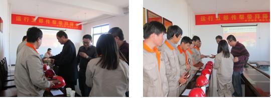 2012年10月17日,對于新啟元運行五部來講,是一個可喜可賀的日子。在這陽光明媚的金秋時節,運行五部的新老員工們在公司副總經理劉立新、綜合管理部經理李樹祥、技術工程部經理王政的見證下,舉行了一次隆重的拜師儀式。此次拜師會的主題是:“一杯拜師茶,帶動你我他!”
