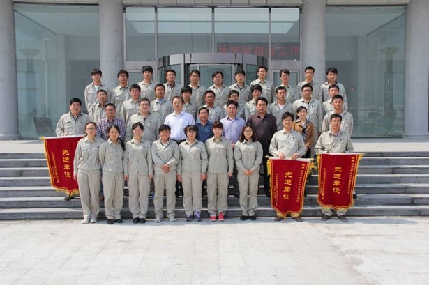 公司領導與獲獎人員在科研樓門前合影留念