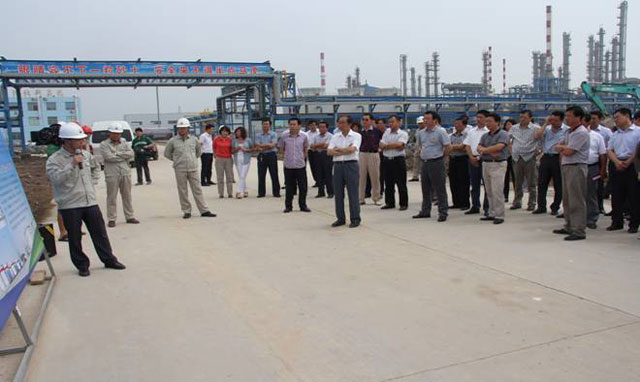 2013年7月13日上午,中捷產業園區黨委書記呂振華帶領全體領導班子蒞臨新啟元,此次行程主要是參觀指導2013年全區重點項目建設情況。集團總經理于國臣、常務副總經理劉國新、新啟元公司董事長李志剛、總經理喬樹華等領導在蒽油加氫項目現場熱情接待了他們。
