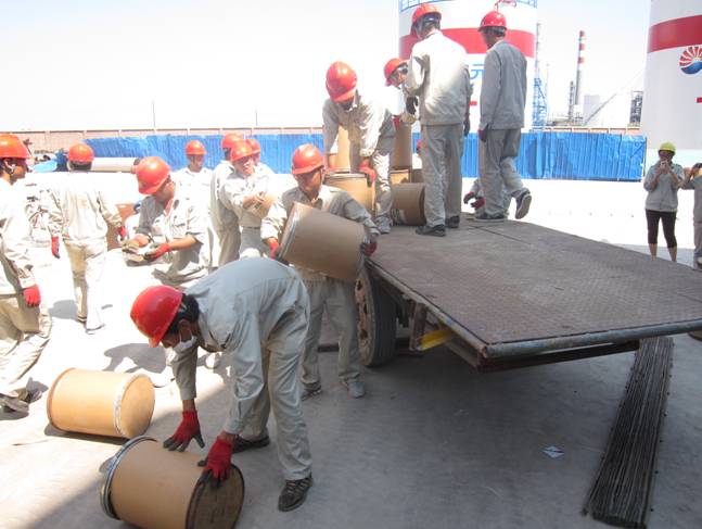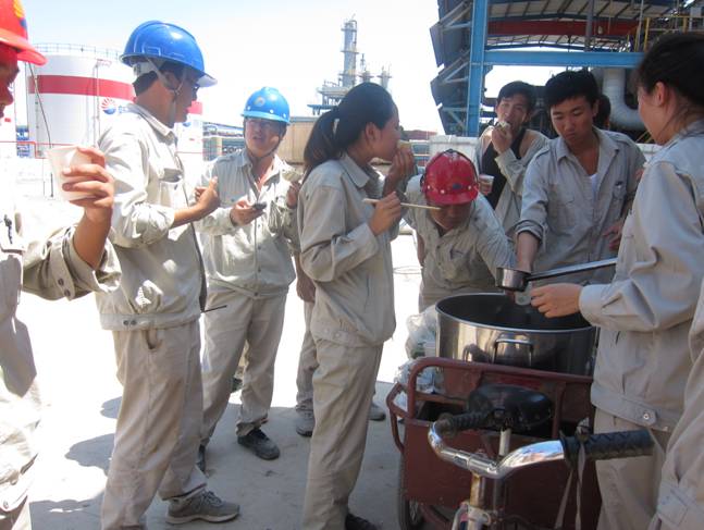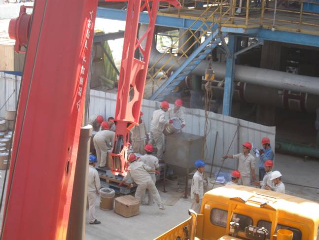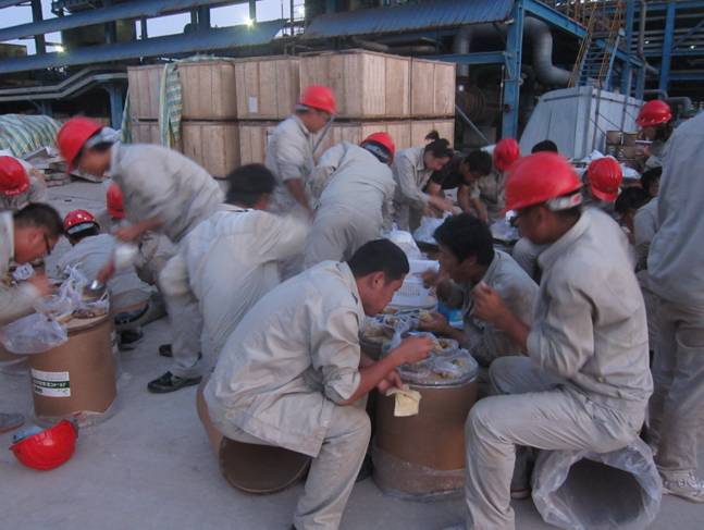 一次又一次的裝運、搬卸、裝填,現(xiàn)場全是伙伴們忙碌的身影。數(shù)不清到底裝填了多少袋瓷球,多少桶催化劑,大家匆匆吃過午飯后又投入到了繁忙的工作中,一直到很晚。